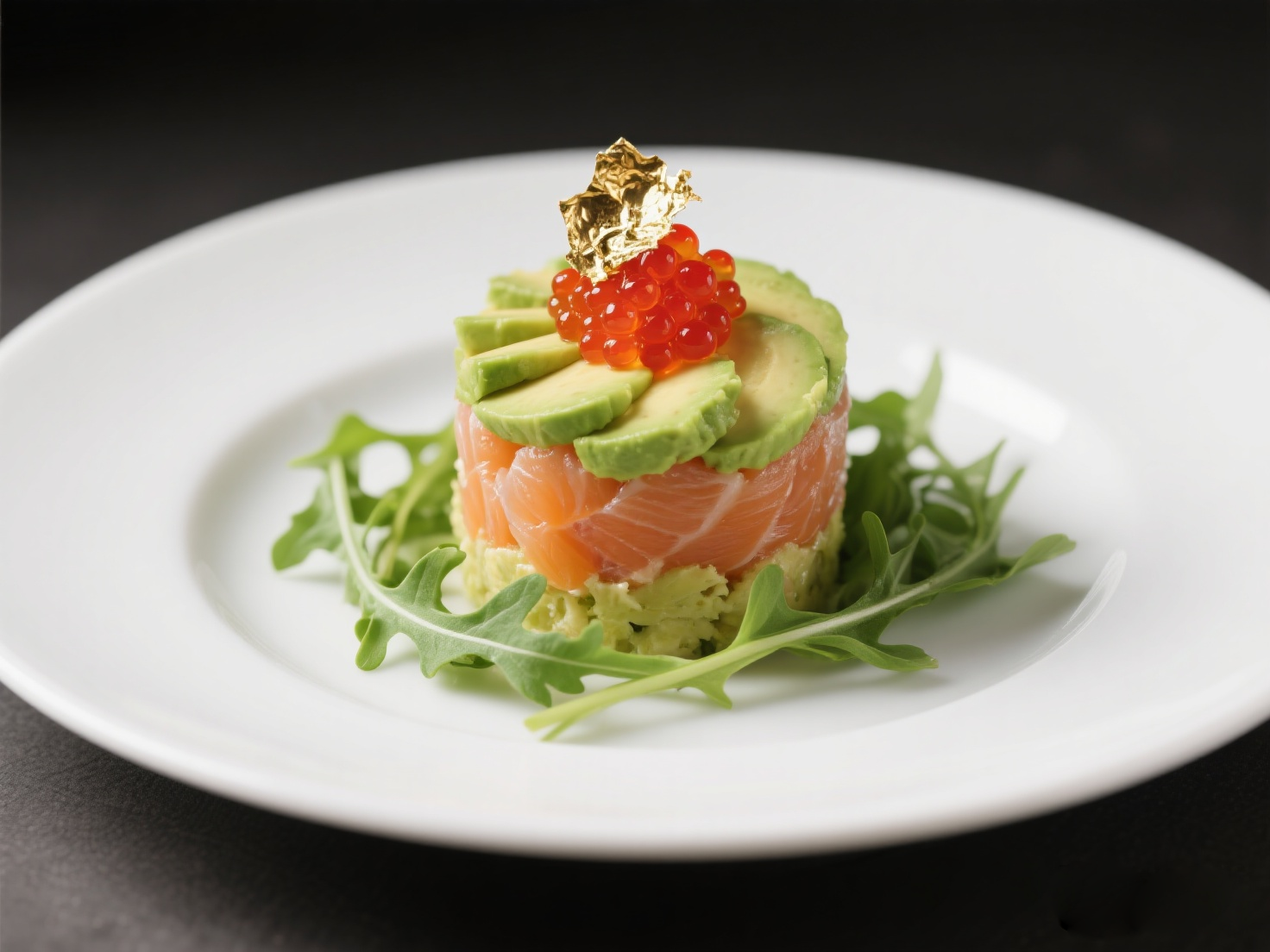 特點(diǎn):牛油果的綿密與三文魚的柔嫩形成雙重柔滑體驗(yàn),檸檬汁激發(fā)鮮味,適合作為高級前菜。